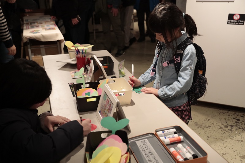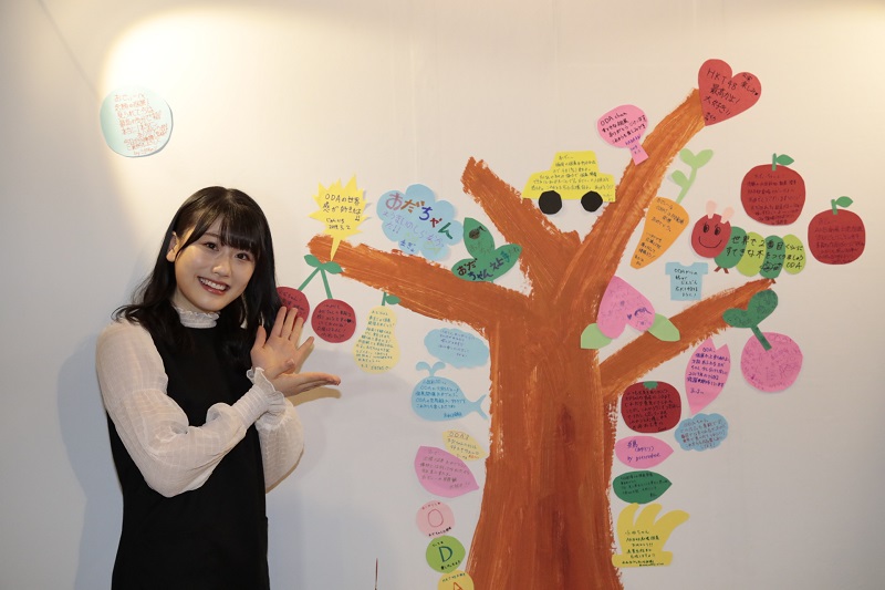 来場者と一緒に作品を作り上げる特設コーナーでは、小田さん自身がAKB48劇場で2日朝に描き上げたばかりの縦2m10cm、幅2m40cmの巨大な木の絵も登場。また、作品だけでなく、フォトスポットや今回展示されるイラストを使用したオリジナルグッズの販売も行われる。小田さんは今回の個展に向け、展示作品のセレクトはもちろん、レイアウトにもこだわり、自ら設営にも参加した。