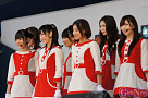 菊地あやかさんは「皆さん雨気持ちいいですかー! 雨最高ですよねー! こんなにたくさんの方が来てくださって本当にうれしく思います。」、小森美果さんは「今日は寒いんですけど、この会場を熱くして夏にしたいと思います!」、岩佐美咲さんは「今日はこんな雨になってしまって、今日は来てくださるかすごく不安だったんですけど、たくさんの方がカッパを着て来てくださって、本当にありがたくてちょっと泣きそうになりました。」と、それぞれ挨拶し、来てくれたファンに感謝。