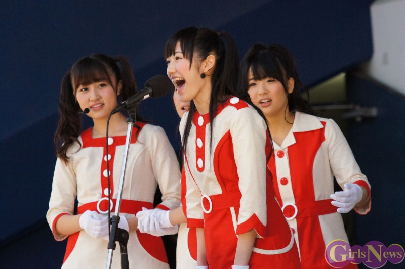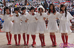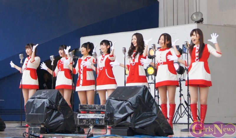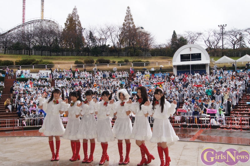 この日は、あいにくの雨にも関わらず 朝から大勢の渡り廊下走り隊7のファンがよみうりランドに大集合。「希望山脈」や「へたっぴウィンク」など5曲を披露するミニライブがおこなわれた。