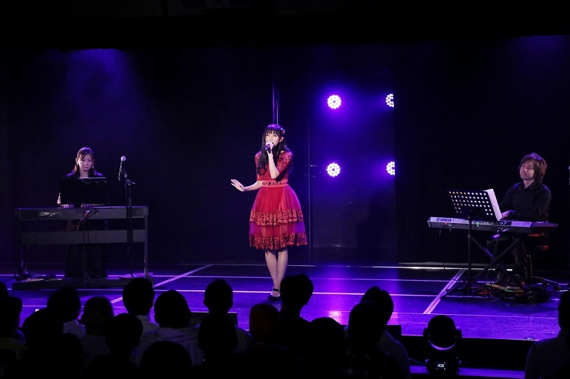 ここでサポートメンバーが登場。ピアノとシンセサイザーの生演奏で『雨のピアニスト』を披露し、「生演奏でライブするのが夢でした。ソロ公演ができるだけでも恵まれていると思います。気持ちをこめて歌わせていただきます」と話した。