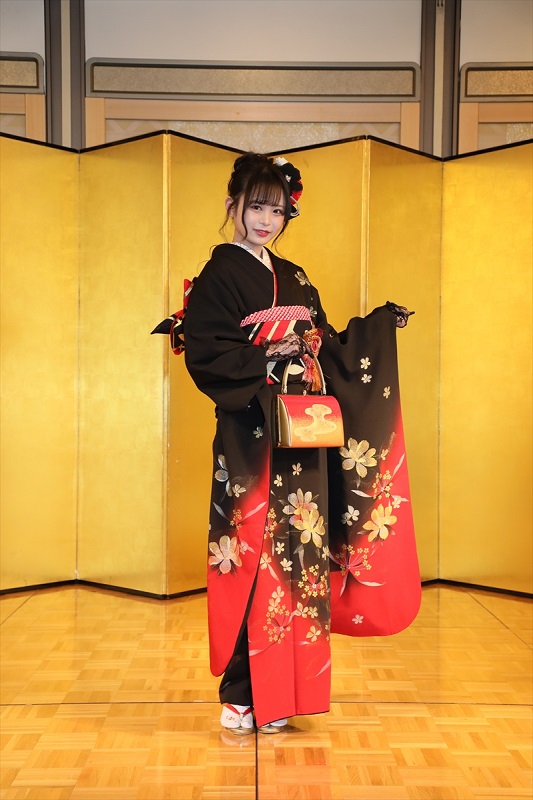 私は普段から私服が真っ黒なので、振袖も黒しかないと思ってこの色にしました。