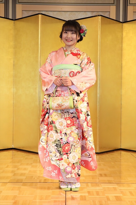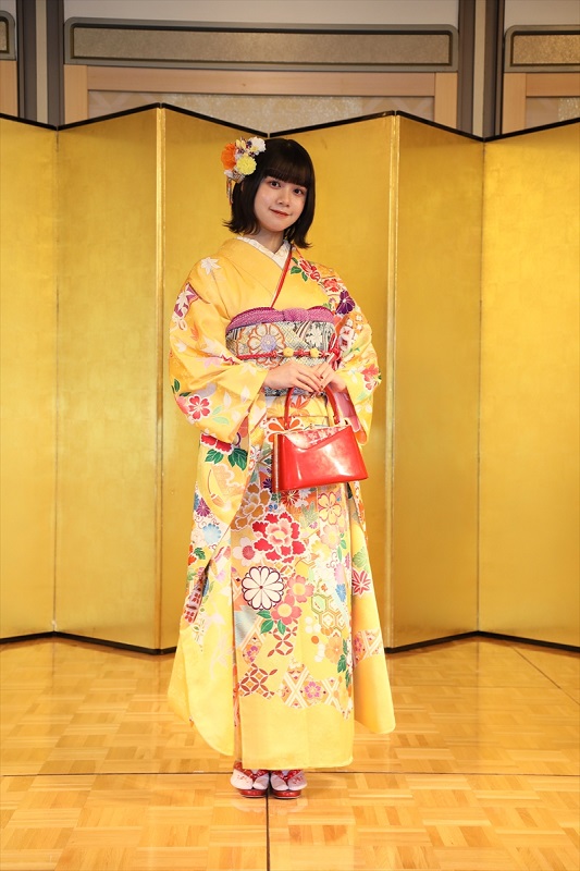 振袖は私のサイリウムカラー黄色のもので、ファンの方に喜んでいただけるかなと思って選びました。レトロで派手なカラーが気にいっています。