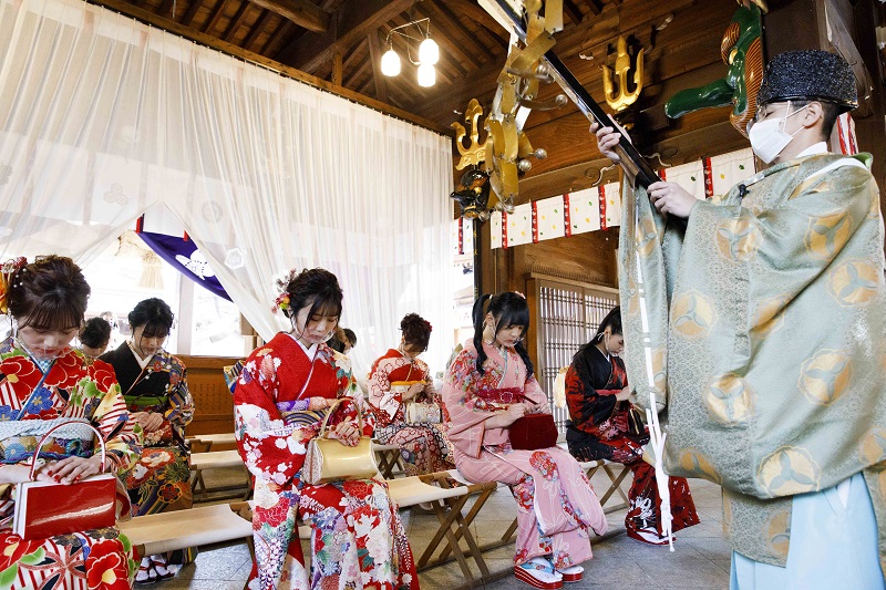 HKT48の新成人メンバー9名が11日、博多の総鎮守・櫛田神社にて成人式を行った。