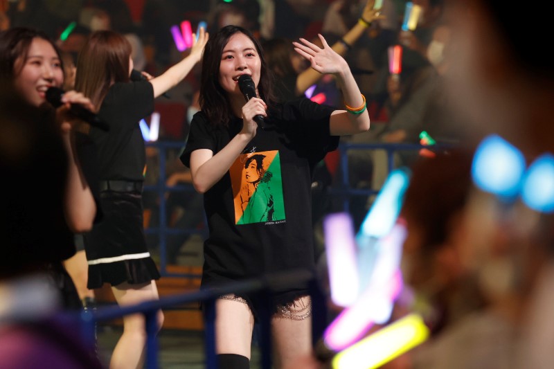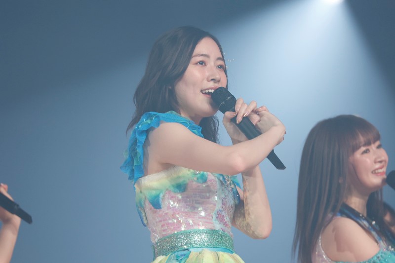 アンコールでは松井さんがプロデュースしたユニット「Black Pearl」の楽曲『Change your world』をライブで初披露。松井さんは「この曲は今立ち上がろうとか前を向こうとか思ってるみんなに向けて書いた曲です」と紹介。松井さん参加の最後のシングルとなった『恋落ちフラグ』に続き、「(会場では)みんなで歌えないけど、心をこめていきましょう」と『仲間の歌』ではメンバー全員がアリーナの内側を歩いて周り、客席に笑顔を振りまき昼公演は幕を閉じた。