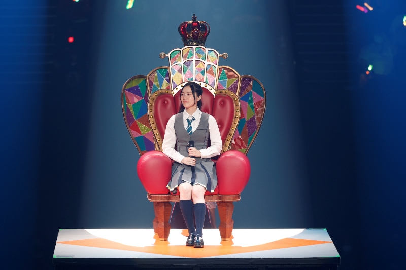 『心のプラカード』では松井さんがトロッコで会場をぐるりと1周し、360度に広がる客席に向けて手を振る。メンバーがプラカードを次々に掲げ、松井さんの「I miss youチュー(ネズミのイラスト)」で締めると、末永桜花さんが『チューよりキス』をキュートにパフォーマンス。続いて、古畑奈和さんや山内鈴蘭さん、谷真理佳さんら歌唱力に定評あるメンバーがソロで登場。10期生の林美澪さんはを12歳になったばかりとは思えない堂々とした姿で『虫のバラード』を歌唱。野島樺乃さんは松井さんが卒業ソロ曲で着たドレスで『泣きながら微笑んで』を歌い、透き通った歌声で会場を魅了した。江籠裕奈は『君は僕だ』でアイドルらしく可憐にソロコーナーのトリを飾った。