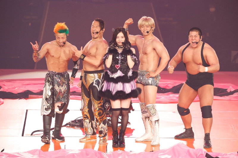 ここで、先日配信されたファンミーティングの“卒コンで聴きたい一曲大投票”で選ばれた『わるきー』を『わるじゅり』として初披露。「筋肉を触らせてよ」と歌い出すこの曲では、なんとプロレス団体「NOAH」所属のプロレスラー 丸藤正道さん、清宮海斗さん、YO-HEYさん、稲村愛輝さんがステージに登場。大のプロレスファンの松井さんは大喜びで、投票での人気曲『ジッパー』でも松井さんと共に会場を沸かせた。