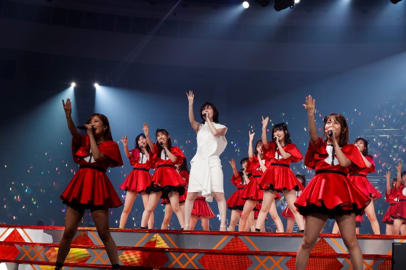 「みんな、大好きー!」と始まった自身のデビューソング『大声ダイヤモンド』では松井さんがトロッコで会場を周り、事前に募集していた「好き」という掛け声で大きく盛り上がった。