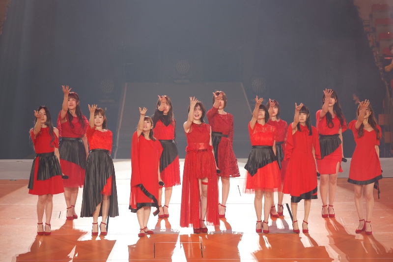 「さびしいですが、最後の1曲です。私が歌う最後のシングル聞いてください」と『恋落ちフラグ」では会場に松井さんのメンバーカラーのオレンジと緑の紙吹雪が舞い、本編を締めくくった。