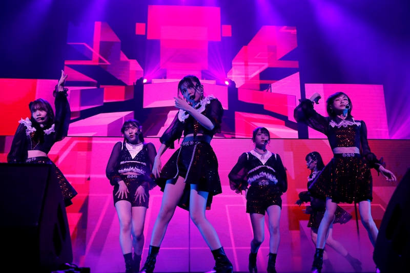 続いて2ndアルバム『アウトスタンディング』のリード曲で矢吹奈子のセンター楽曲『突然 Do love me!』、2019年にリリースした『意志』をパワフルにパフォーマンス。スタートから激しいダンスナンバーを続けて披露した。