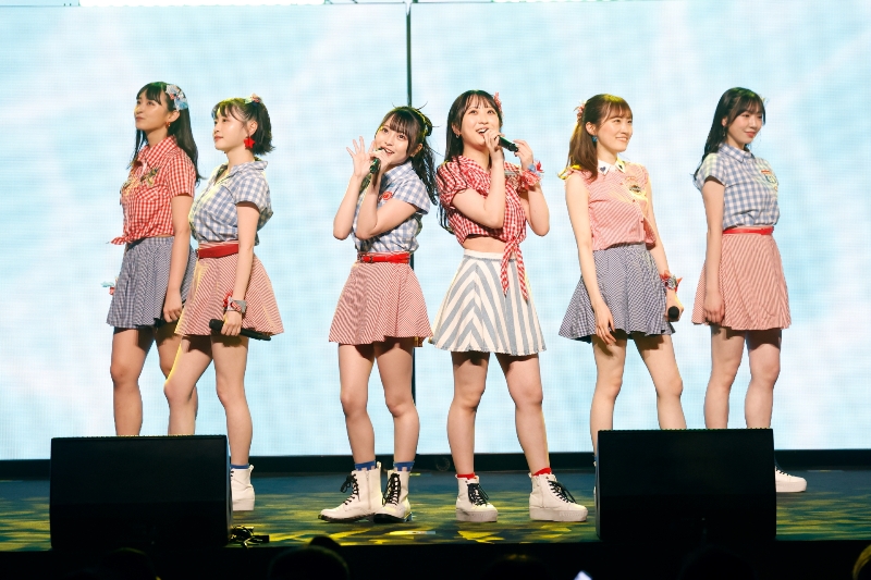 松岡菜摘は「久しぶりの景色に鳥肌が立ちました。皆さんと楽しい時間を過ごせたらいいなと思います」と笑顔で挨拶。矢吹奈子は「ツアーが出来て本当に嬉しいです。最後までみんな怪我なく、突っ走っていけたらいいなと思っています」と意気込んだ。