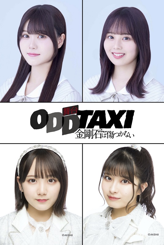 舞台「オッドタクシー 金剛石(ダイヤモンド)は傷つかない」がメインキャストを一新し2023年11月再演が決定。伊藤理々杏(乃木坂46) 、佐藤璃果(乃木坂46) 、田口愛佳(AKB48) 、行天優莉奈(AKB48) の4人がメインキャストを務める。