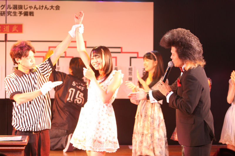 サイード横田絵玲奈さんは「去年は1 回戦目で負けてしまって本当に悔しかったですけど、今回、今でも信じられないですけど、勝てて武道館にいくことができて本当にうれしいです。研究生の中で、21 分の1の確率で武道館にいけて、すごい嬉しいので、これから、みんなの気持ちの分まで、精一杯武道館でも勝てるように頑張っていきたいです。」と語った。
