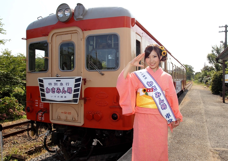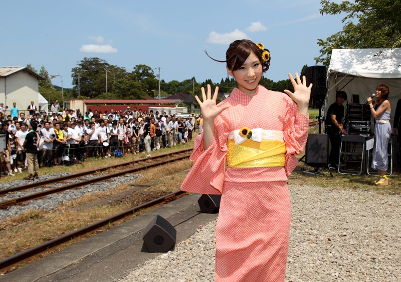 7月29日、AKB48 チームAのメンバーで2月1日に「無人駅」で徳間ジャパンコミュニケーションズより演歌歌手としてデビューした岩佐美咲さんが千葉・いすみ市のいすみ鉄道・国吉駅で大ヒット記念イベントを行った。