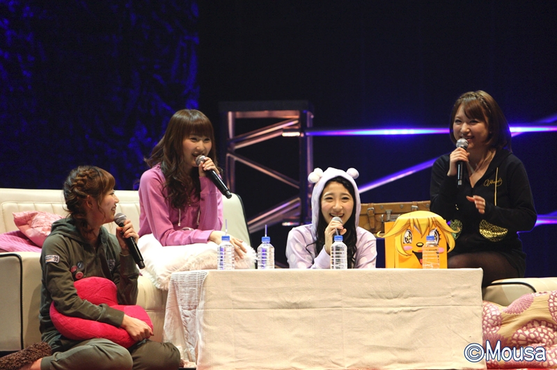 1年を振り返り仲谷明香さんは「あっという間でした。本当にいろんな経験をさせていただきました。声優選抜で活動が出来たし本を出せたり、それを生かして来年も頑張りたい。来年はちょっとずつ着実に進んでいきたい」、中田ちさとさんは「AKB48に入ってからの5年間の中でいちばん嬉しいことがたくさんあって、来年も頑張ろうとなれる大切な年でした。来年ももっともっと頑張ります。ファッションに関わる仕事も出来たらいいと思います」、内田眞由美さんは「今年はじゃんけん大会がいちばん強く思い出に残っています。今までは1回目で優勝していたので『じゃんけんの子』と呼ばれていたのですが、最近は『岩の子』と呼ばれているのでインパクトはあったのかなと思います。とりあえずギターの練習をします」、田名部生来さんは「今年は自分の好きなことやりたいことをたくさん出来た年でした。自分らしさを大切に1年を頑張れたと思うので、来年は20才ということで本も出させていただくので20才の自覚を持って頑張りたいと思います。今後も『Mousaの日』でしか出来ないイベントにしたいです」と話した。