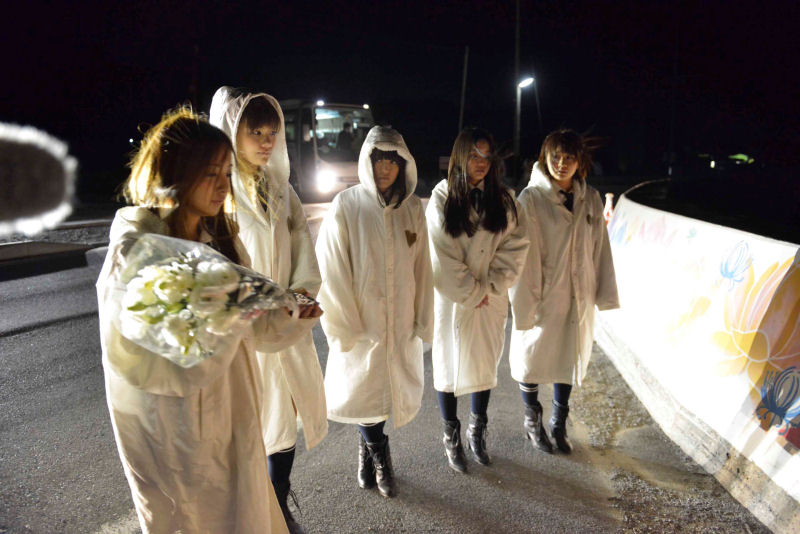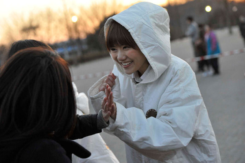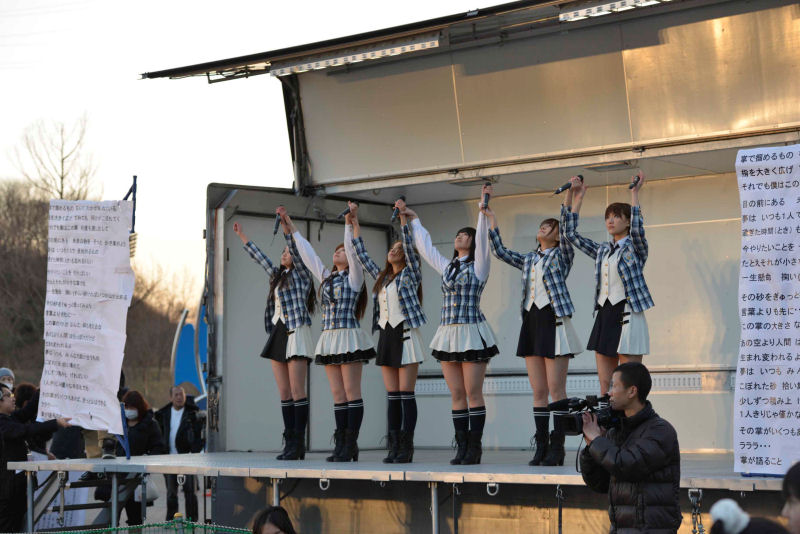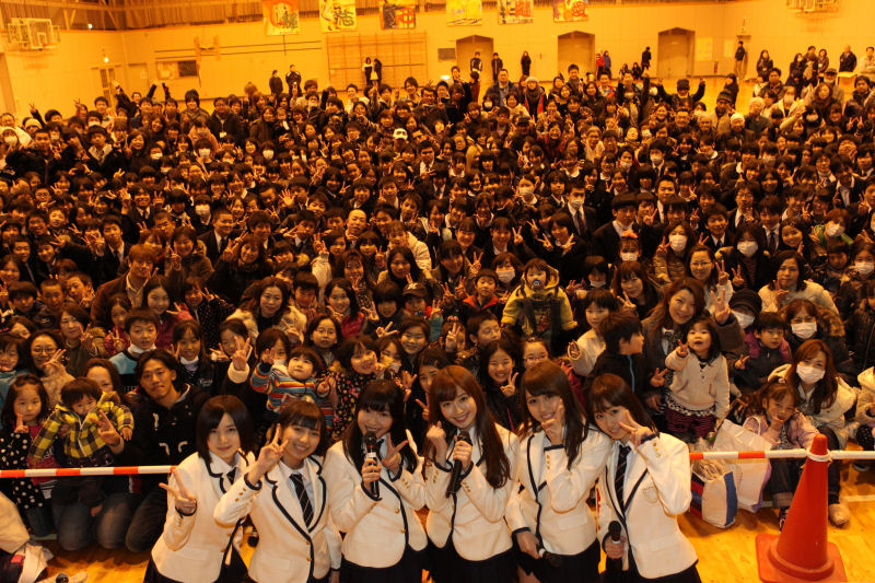 AKB48グループが3月11日に東北3県10ヶ所の被災地を訪問し復興支援ソング「掌が語ること」を熱唱