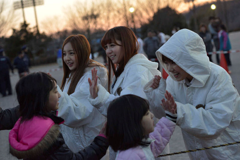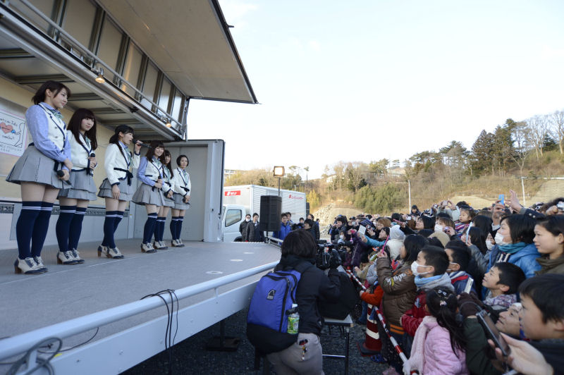 震災から丸2年となったこの日、AKB48グループのメンバーを代表して60名が、6名ずつに分かれ、東北3県10箇所を一斉に訪問。