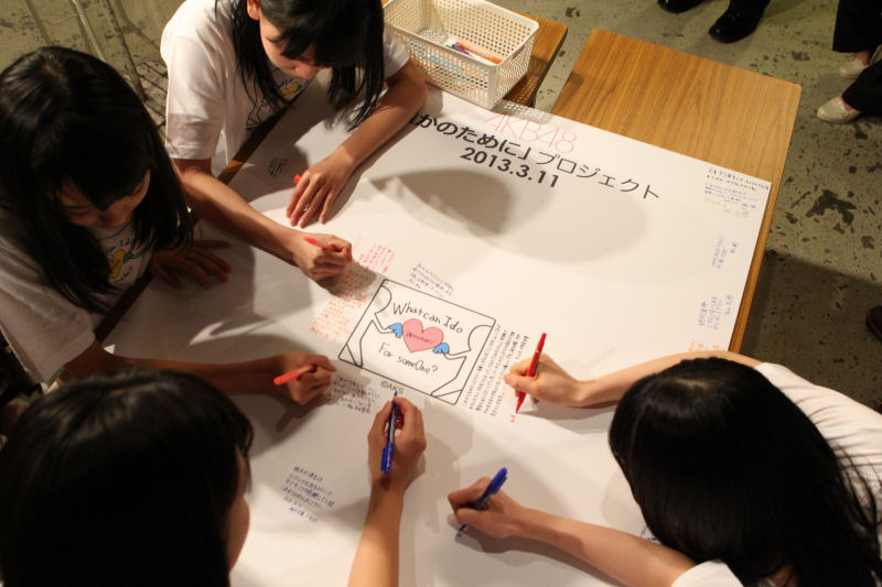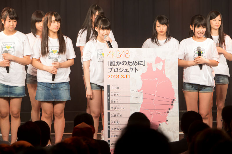 AKB48グループは2011年3月11日に起きた東日本大震災のあと、自分たちも何かできないかと「誰かのために」プロジェクトを発足。被災地での支援活動や、全国で行った握手会で募金活動を行うなど継続的な支援活動を行っている。