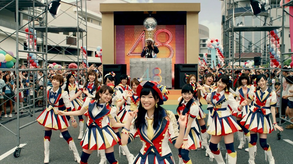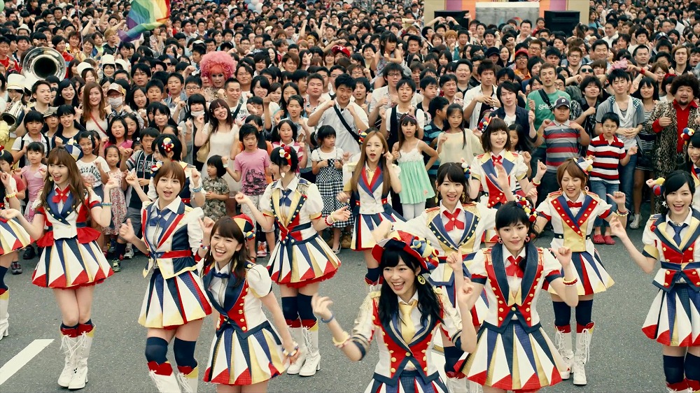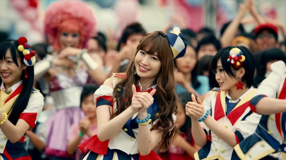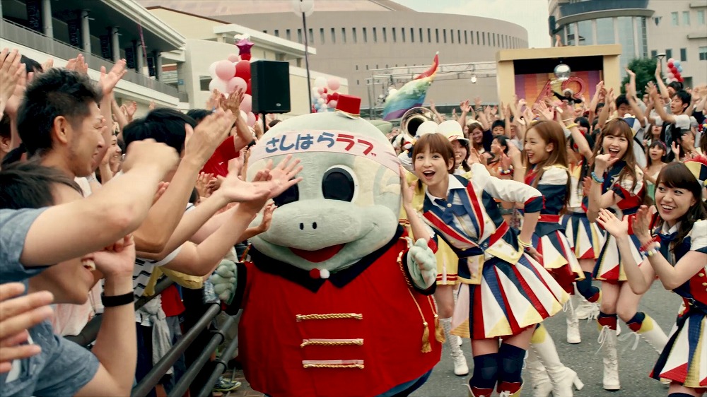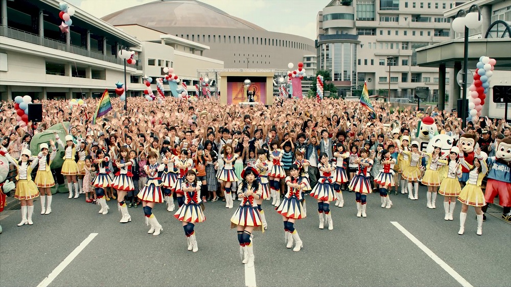 MVは3日間、福岡でのロケで撮影されました。センターをつとめる指原莉乃さんの本拠地であるHKT48劇場をベース基地として福岡ヤフオク! ドーム周辺をはじめ、福岡市内の市場や、高校、幼稚園などいろいろなところで多くのエキストラの方とメンバーが触れ合い一緒に踊っています。なんと元プロレスラーの小橋建太さんもプロレスリングをバックにダンシング!