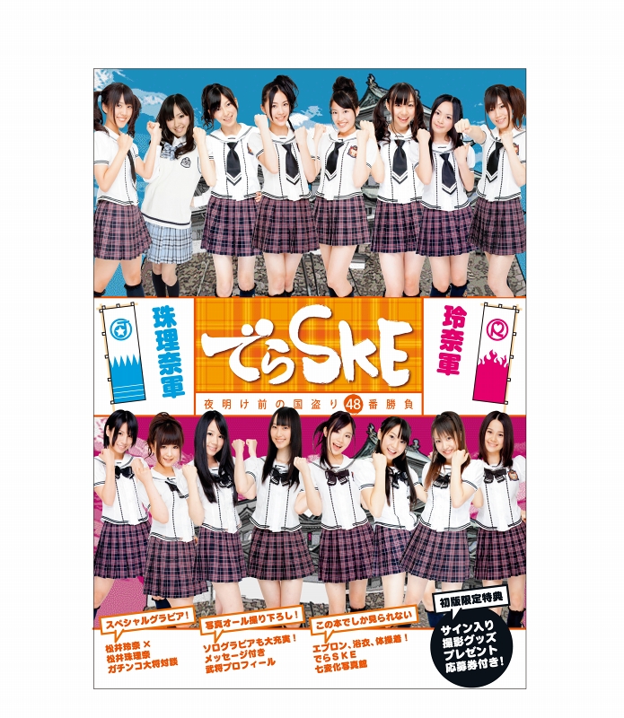 またTBSで好評オンエア中のアイドル戦国バラエティ「でらSKE~夜明け前の国盗り48番勝負」のDVD vol.2とオフィシャルガイドブックも同時発売。珠理奈軍と玲奈軍のこれまでの熱い戦い完全収録し豪華特典も付くファン必携のアイテムとなっている。