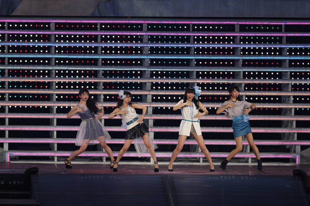 アンコール明けには、大島優子、北原里英、指原莉乃、横山由依4名によるユニット“Not yet”が登場し、9月25日(水)にリリースされるニューシングル「ヒリヒリの花」を初披露。5枚目のシングルは1年4か月ぶりの新曲ということで、メンバーも喜び全開で初パフォーマンスを楽しんでいました。