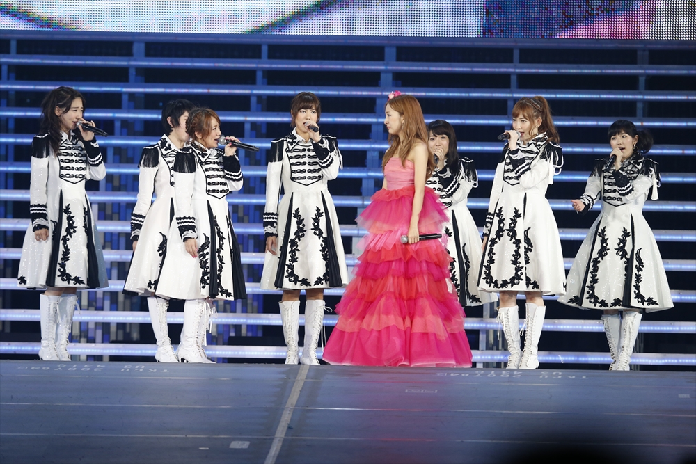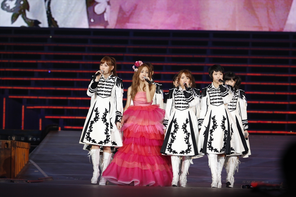 アンコール明け、“ともちん”コールに迎えられた板野は卒業曲「最後のドア」を歌いながら目を潤ませていましたが、「桜の花びらたち」が始まりペンライトの光で作られた“TOMO”の文字が会場に浮かび上がると号泣。会場に集まった皆様のご厚意に、他のメンバーも感激の涙を流しました。