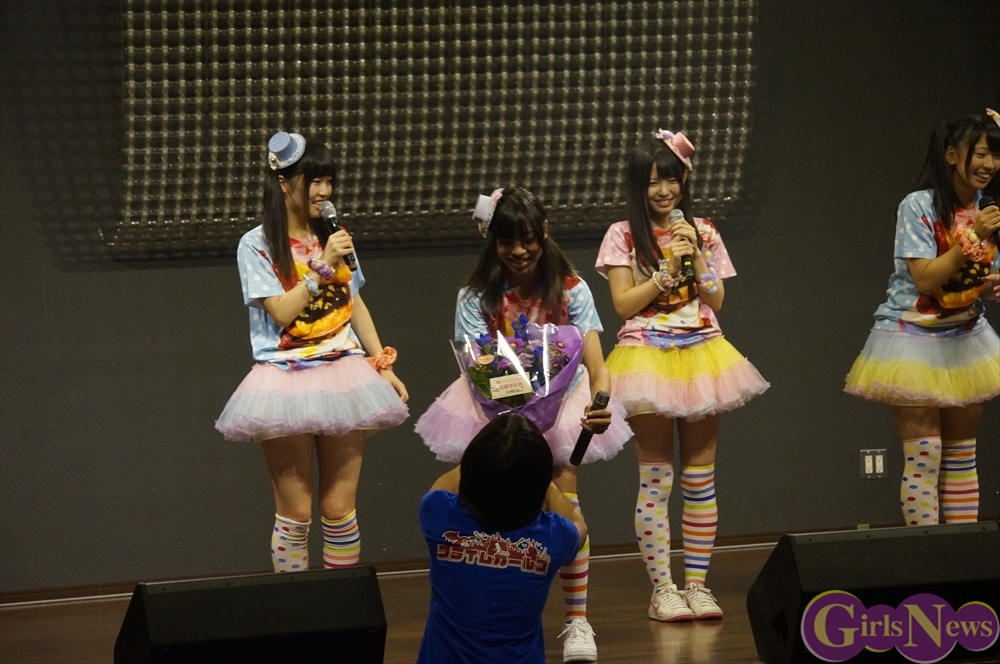 飯村麻衣子さんは「今日デビューだったんですけど、今まで練習のときは不安とかがあっていろんなことを考えながら踊っちゃったりしてて素直に楽しめてない部分があって。だけどいざステージに立ってみたら緊張とか不安よりもファンの人がたくさん来てくれてありがたいなと思って。ステージに立つことがすっごい楽しくて、顔が自然にすっごい笑顔になって、今まで生きてて一番幸せなんじゃないかってくらい幸せでした。」と本当に幸せそうな笑顔を浮かべた。