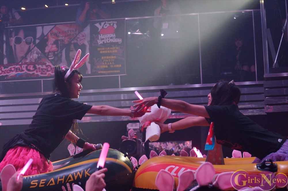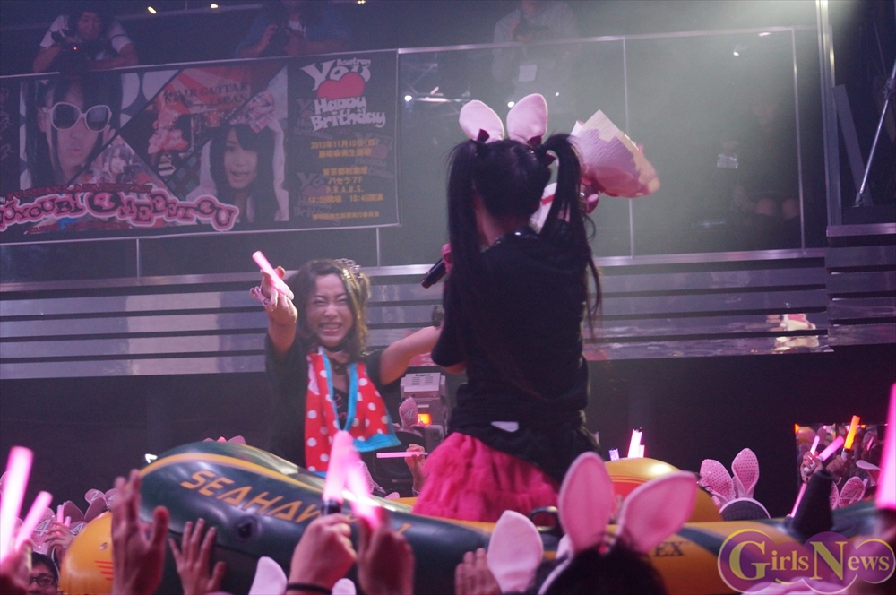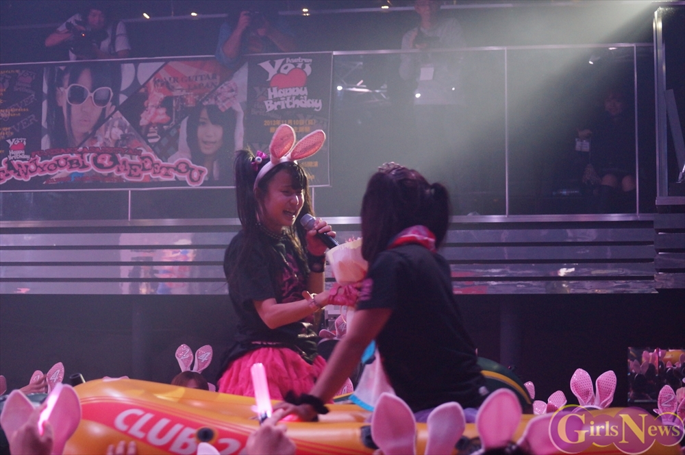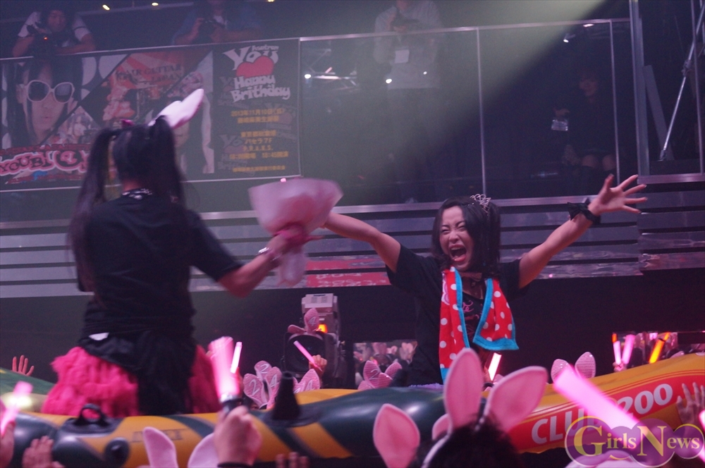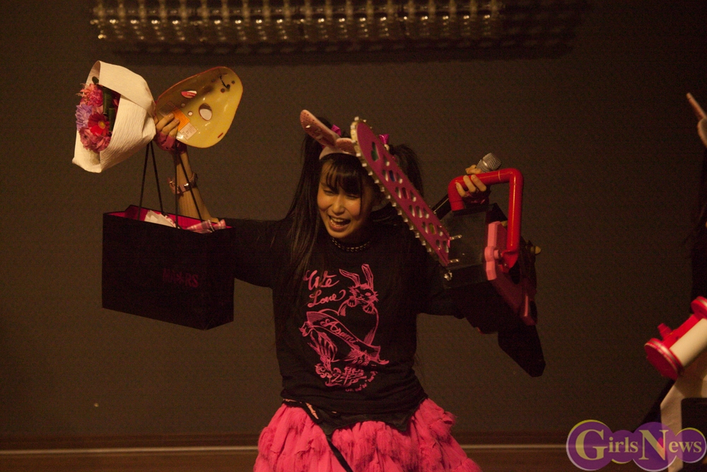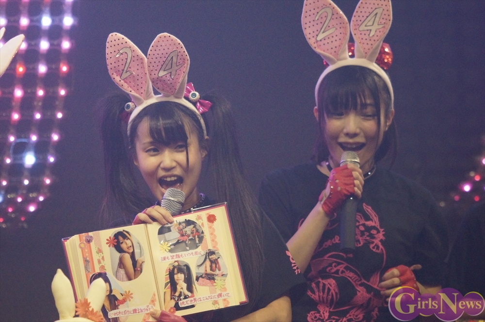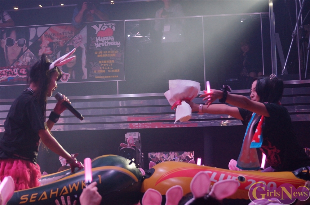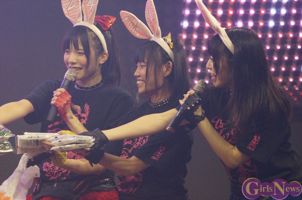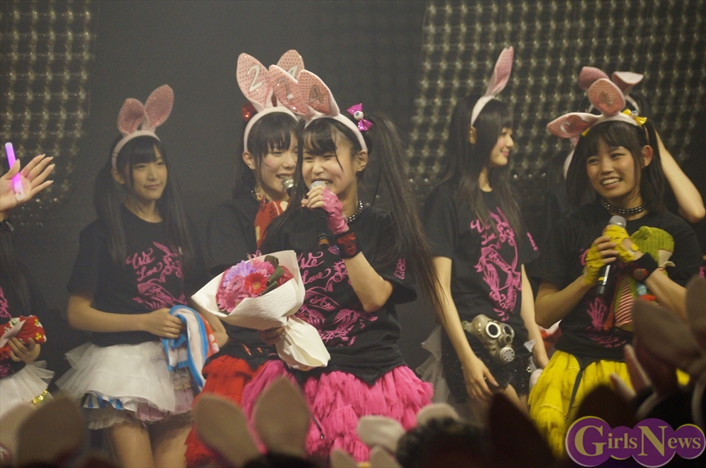 恒例のプレゼント攻勢には、花束やヲタ図鑑、うさ耳や生誕Tシャツ。メンバーからの色紙や海苔のプレゼントも!