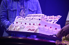 生誕Tシャツは川村虹花さんがデザインしたもので、王冠や森カノンさんのイニシャルが入ったおしゃれなデザイン。骨折しているためステージでパフォーマンスができなかった川村虹花さんも生誕セレモニーではステージに登場し、「男の人でも女の人でも私服で着れるように」と生誕Tシャツのデザインについて語ってくれた。