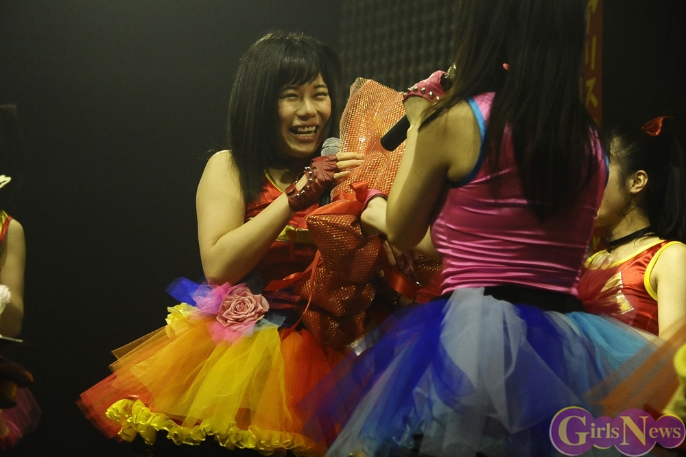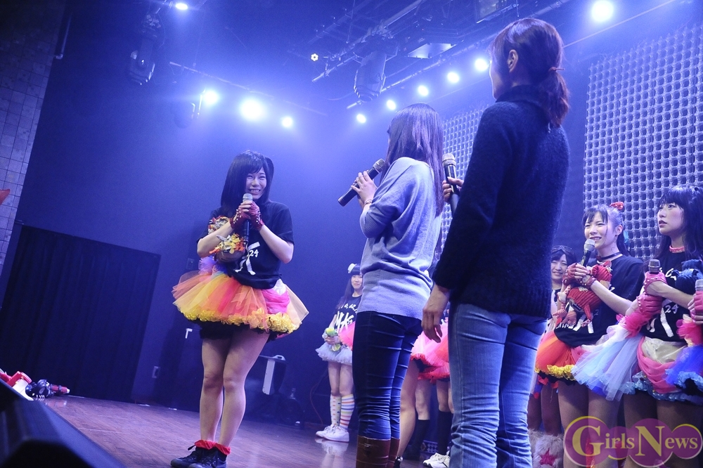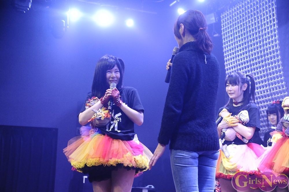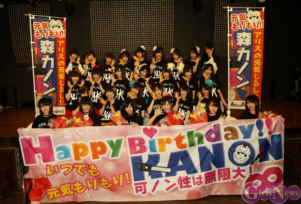 森カノン:皆さん本日は森カノンの生誕祭にこんなに沢山集まってくださってありがとうございます。私は去年もP.A.R.M.Sで初の生誕祭をやらせていただいたんですけども、その時生誕祭をして正直来年の今頃私はここにいるのかなっていう不安な気持ちもありました。そんななかこの一年凄い激動の毎日でメンバーが卒業したり、なーちゃんが入ってきたり、仮面女子の活動が多くなってきたり、アリス十番や仮面女子の活動が物凄いスピードで目まぐるしく毎日が過ぎていく中で私は森カノンとして成長できているのかなと毎日毎日不安でいっぱいでした。実は、アリス十番を卒業して芸能界からも本当に離れたいと思ってしまうときもあって、事務所の社長に相談したりして、もう本当に何も考えたくないと思うこともあって。私は今まで根拠の無い自信や前に前に出るガツガツした精神だけでここまでやってきたと思っているんですけども自分に自信をなくしてしまって。自分の存在意義を失ってしまって、自分のことがよくわからなくなってしまいました。でも、私が10日ほどお休みをする前の日のライブにファンの方が沢山駆けつけてくださって。その時初めて沢山の人が私のライブを見て泣いている姿を見ました。その姿を見て私はやっぱりステージにずっと立っていたいと、ファンの人を悲しませたくないと思いました。いろいろ考えて沢山悩んだりもするんですけど、いつでも私を支えてくれるパワーの源は間違いなくファンの皆さんです。今日も仕事とか色々ある中、時間を作ってこうして会いに来てくださって本当にありがとうございます。そして、私はアリスプロジェクトにいてこのアリス十番にいることを誇りに思っています。メンバーはみんな本当に仲が良くてスタッフさんも凄いみんな良い人で今ここにいれることが本当に心から幸せです。私はもう24歳でアイドルとして時間がないと思うんですけど、一生懸命ひたむきに走り続けていくので、これからも応援よろしくお願いします今日は本当にありがとうございました。
