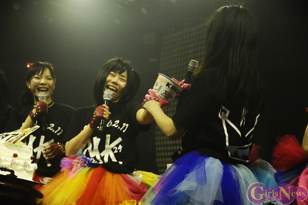 生誕セレモニーでは、森カノンさんに対して、いつも楽屋で食べているというカップラーメンシーフード味やファミリーマートの鶏そぼろ弁当をプレゼント。森カノンさんはプレゼントされたそれらを嬉しそうに食していた。