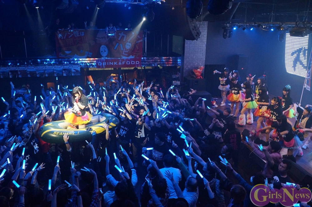 最後の曲「夏だね☆」では、もちろんこの日の主役 森カノンさんがゴムボートに乗って青色のサイリウムの海を大航海! 森カノンさんは涙を流しそうになりながら大喜び。この日の生誕祭について森カノンさんは「想像を絶する生誕祭」、青色のサイリュームに囲まれて「本当の海みたい。ボートに乗って航海して涙が出てきちゃった」と絶賛していた。