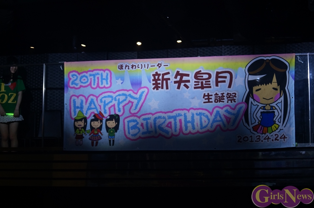 最後に新矢皐月さんは「新矢皐月の二十歳の生誕祭にお越しくださり本当にありがとうございます。これから私はもっともっとしっかりしてほんわりとしたリーダーになるよう心がけていくので、皆さんもついて来てください。これからもよろしくお願いします。」と、一段と目を細めながら集まったファンにこれからの意気込みを宣言した。