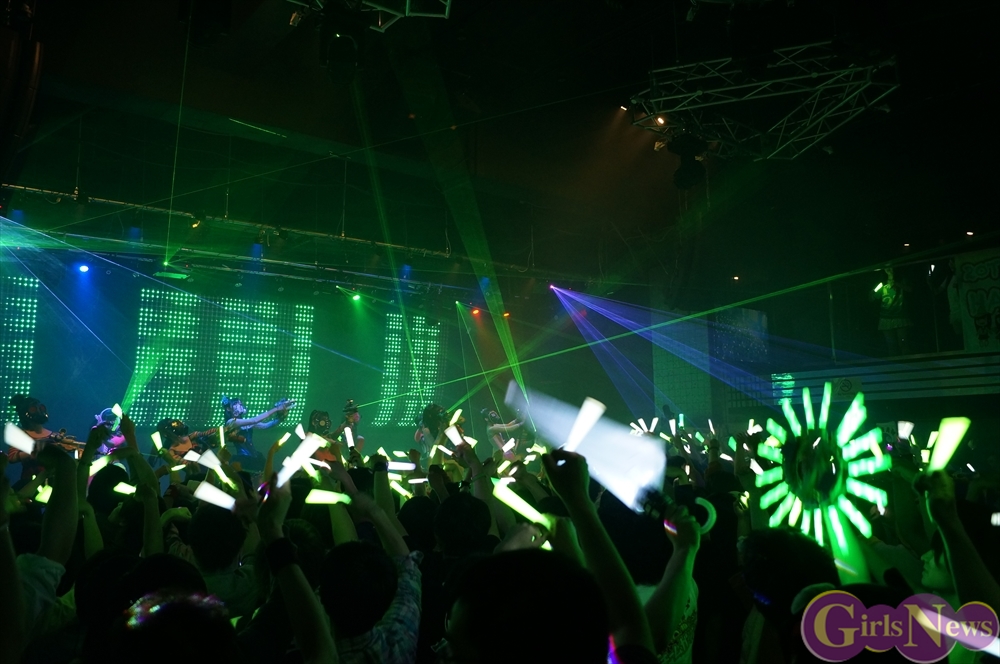 スチームガールズが登場すると、緑のサイリュームで会場全体が覆われ、となりのトトロのトトロの森のように一面が緑で覆われる。