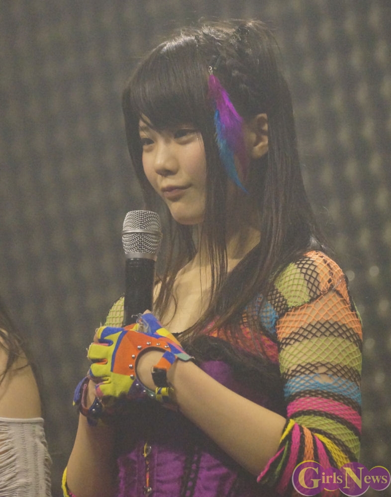 スチームガールズのリーダー 新矢皐月(あらや さつき)さんは「今日1日目を終えて、1部ではアリス十番と交互に120分のステージをやって、2部では5曲のステージだったんですけど、平日でこんなに曲をやることも無くてすごい楽しかったのと、カメラが何台もあって、カメラ越しに全国の人に配信されてるんだと思ったら舞い上がってしまって、カメラ越しに指を指したりして、届いてるかなと思ったりしていて、私は青森出身なので、青森にいるときにアリス十番の動画とかをよく見てたりして、レスをもらえるとすごい嬉しかったことを思い出して、この3日間、地方の人にも楽しんでもらえたらいいなと思って、後2日やろうと思いました。楽しかったです。」