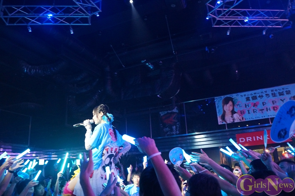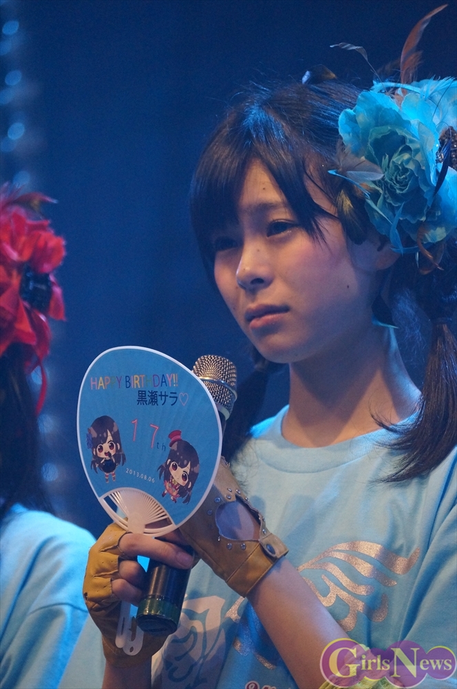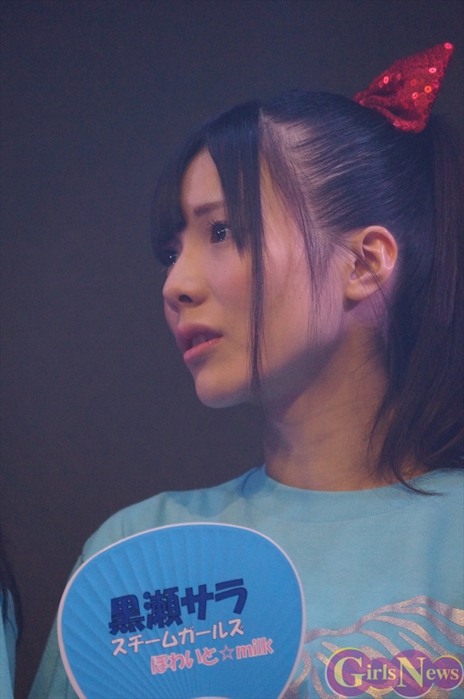 黒瀬サラさんは「私はこのスチームガールズに入る前には、ほわいと☆milkとして最初頑張ってたんですけど、ずっとこの常設劇場ができる前に、毎日毎日、先が何も見えない中、対バンを繰り返していて、ほわいと☆milkの中にはメンバー1人に対して、ファン1人が当たり前というか、誰も見てくれる人がいない時もあったり、でも少ないファンの方たちが毎日毎日欠かさず対バンを見てくれる方がいました。でも芝浦CUBEでライブをしてるときに、私はずっとずっと動員は本当に無くて、話し方とか物販の対応とか色々変えてみたけど、ずっと何も変わらなくて、どうしたらいいのかなってずっと考えてました。でもこうやってファンの方がこういう風に水色のサイリウムを振ってサラのことちゃんと見てくれて、サラちゃんすごいねって言われるように、すごい人数が来てくれたり、誕生日の日は夢だった動員1位にさせてくれたり、本当に感謝しています。私は今、スチームガールズのセンターに立っています。前はもっと前に立つことが苦手で、こうやって人前で喋るのもなによりも苦手で、人と目を合わせることも苦手で何もできないけど、こうやって1人1人毎日ファンの方がサラのことを見てくれて、1人1人順調にファンが増えていって、こんな豪華な生誕祭も開いてくださって、ずっと着たかったドレスもプレゼントしてくれて、本当に嬉しい気持ちでいっぱいです。私はスチームガールズができて、センターにもなってこんなすばらしい環境でライブができることなんてずっと思いもしませんでした。ずっと勝ちたい気持ちがいっぱいあったけど、どこかで自分には無理だろうなって思うこともあったり、自分が前に立って嫌だなと思う人とかいるんじゃないかって、センターになるってなった時もすごい不安でした。朋恵ちゃん(小柳朋恵)の方が動員もあるけど、人気もあるけど、サラのことサラの方が良いって思ってくれる人やこれから少しでも増えていけば、これからも頑張っていくので皆さんこれからもずっと黒瀬サラ応援よろしくお願いします。」とコメントし、集まったファンに感謝した。