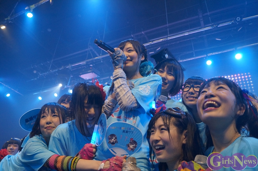 恒例となった生誕祭では、メンバーとファンでバースデーソングを熱唱すると、黒瀬サラさんのイメージカラーが水色ということで、ケーキのクリームも水色でデコレーションされたくまモンのバースデーケーキで祝福!ファンからは花束や生誕Tシャツなどのプレゼントが贈呈され、黒瀬サラさんの生誕が祝福された。