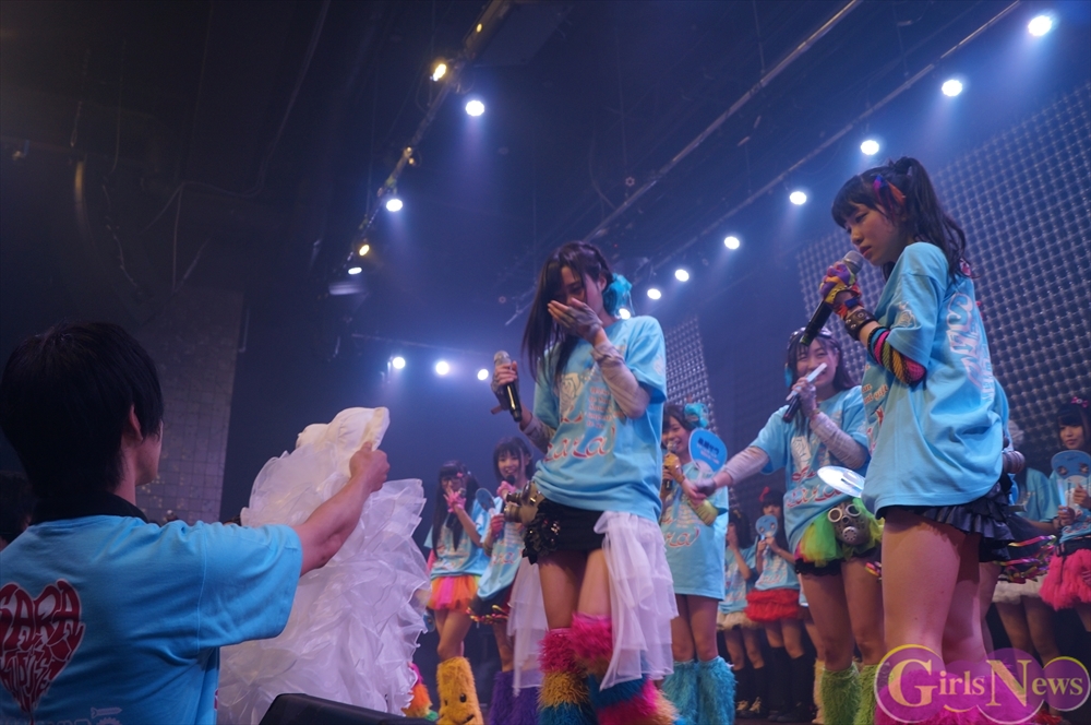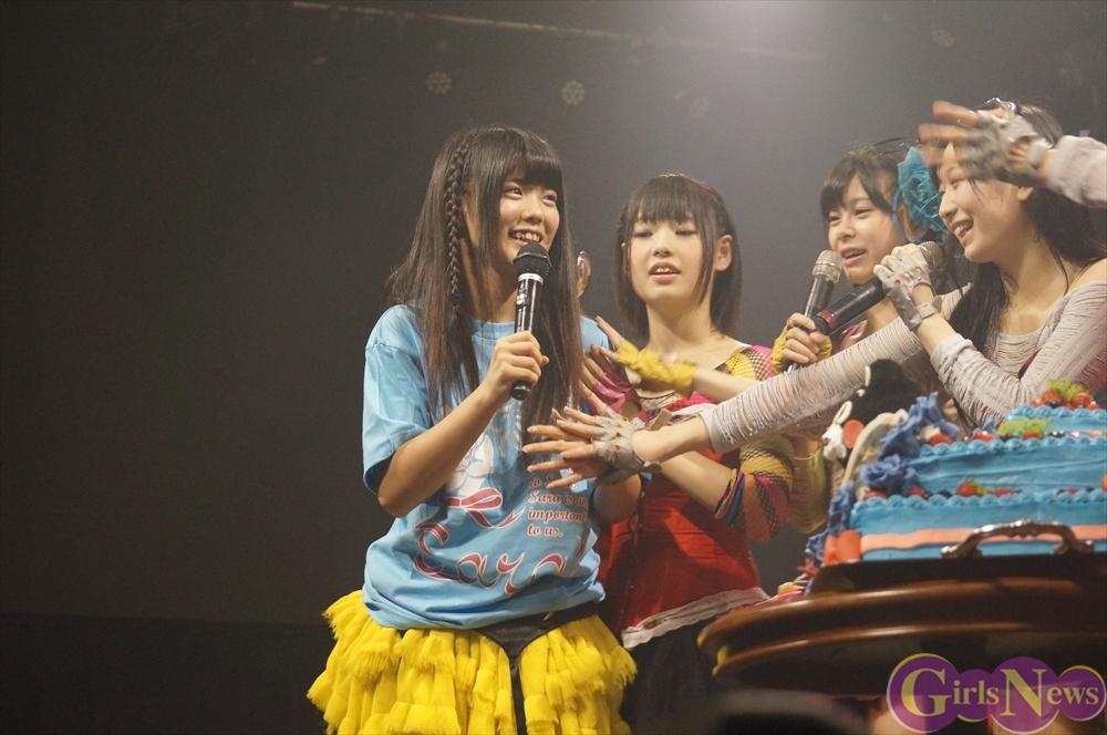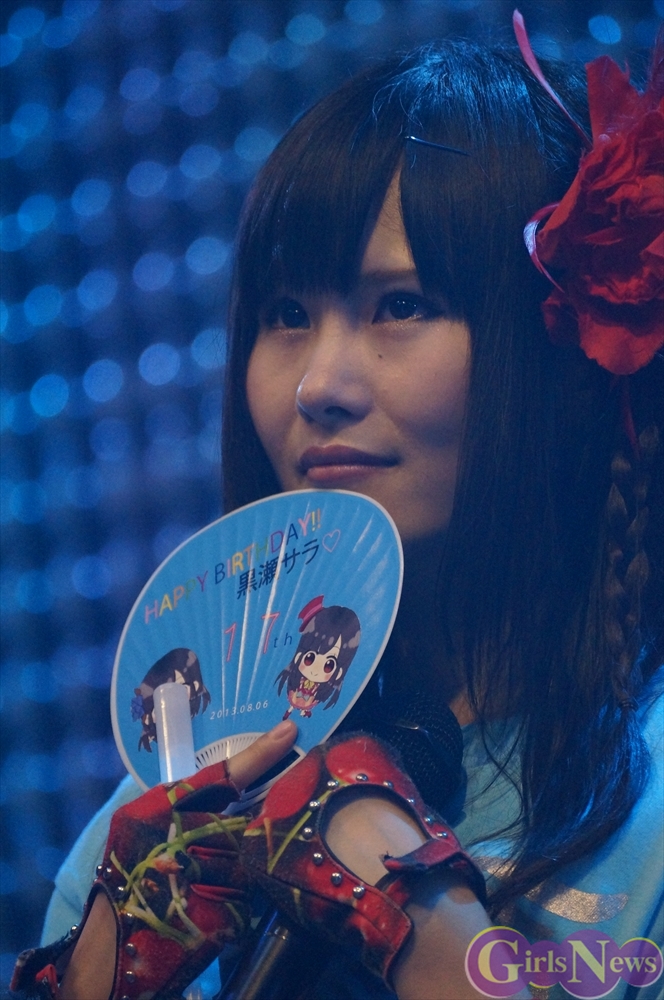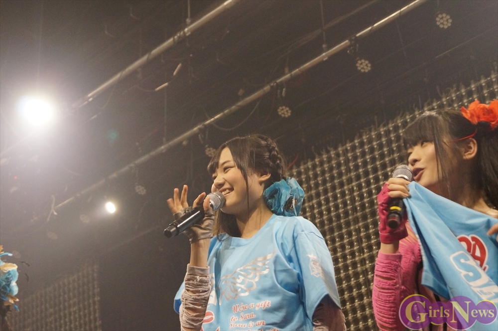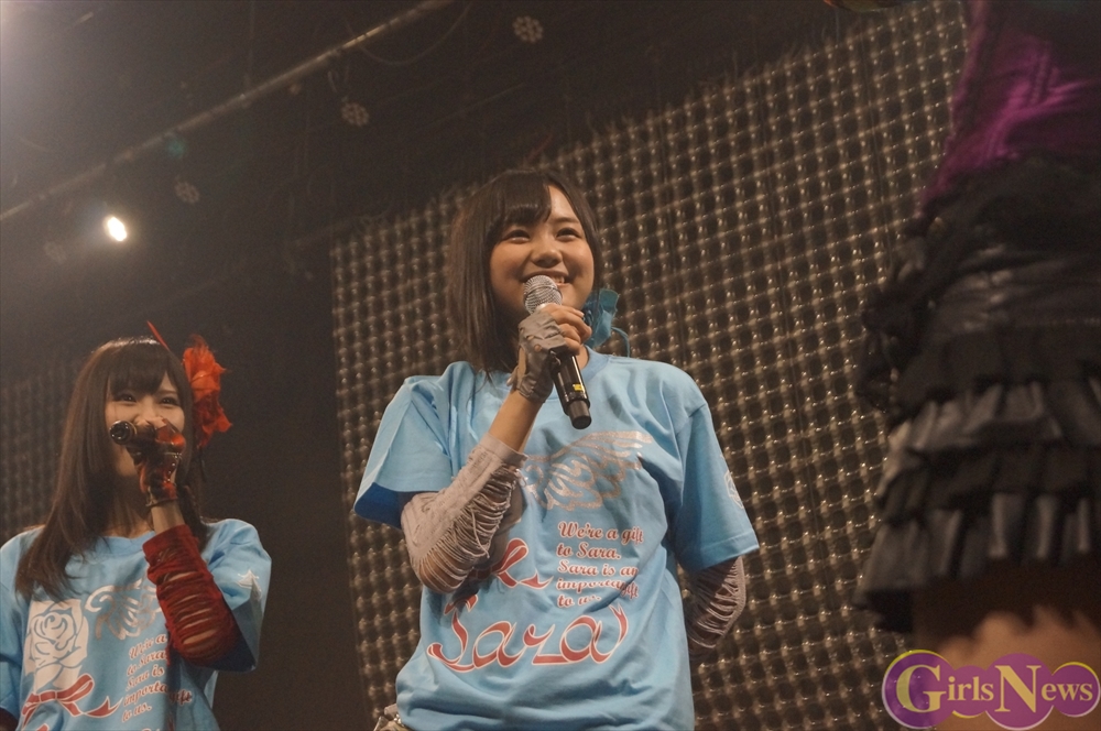 また、スチームガールズを代表して月宮かれんさんがお祝いのメッセージを語る「サラちゃんへ、お誕生日おめでとう! サラちゃんと私は、ほわいと☆milkの時からずっと一緒にいるよね。2012年1月30日にデビューしてダンスもトークもすべて始めてで、何もわからないままスタートしました。それから何ヶ月後かにすっごい寒い中、毎日外でライブをしたビリーブ・ニッポンがありました。社長に何も成長してないって怒られてほわいと☆milkが解散の危機になったりしたよね。6月頃にOZという新ユニットができて、私たちはすぐに抜かされてしまいました。ほわいと☆milkで喧嘩したこととかもあったり、あと、吉祥寺でめっちゃ高熱の中、2人でライブをしたこと覚えてるかな? 大つけ麺博が始まってサラちゃんはトッピング☆ガールズに、かれんはスープ☆ガールズと別々のユニットになってしまいました。人見知りで大人しい性格のサラちゃんにはつらいこともあったと思います。それでも弱音を吐かず、ダンスも毎日毎日練習してたサラちゃん。スチガに入ったときは後列だったのに、いつの間にかセンターに立っていて、私とサラちゃんの間には大きな差ができてしまいました。かれんには解らないセンターの重みだったり、プレッシャー・悔しいこと・つらいこととか沢山あると思います。私たちは最初は何もできなかったのに沢山のことを乗り越えてここまで成長することができました。これからも2人で乗り越えて行こうね。でも私とサラちゃんの間にはやっぱり大きな差があるので、私も追いつけるように頑張ります。なのでこれからもセンターで輝き続けていてください。私はサラちゃんを誇りに思います。これからもずっと良いライバルでいてください。」