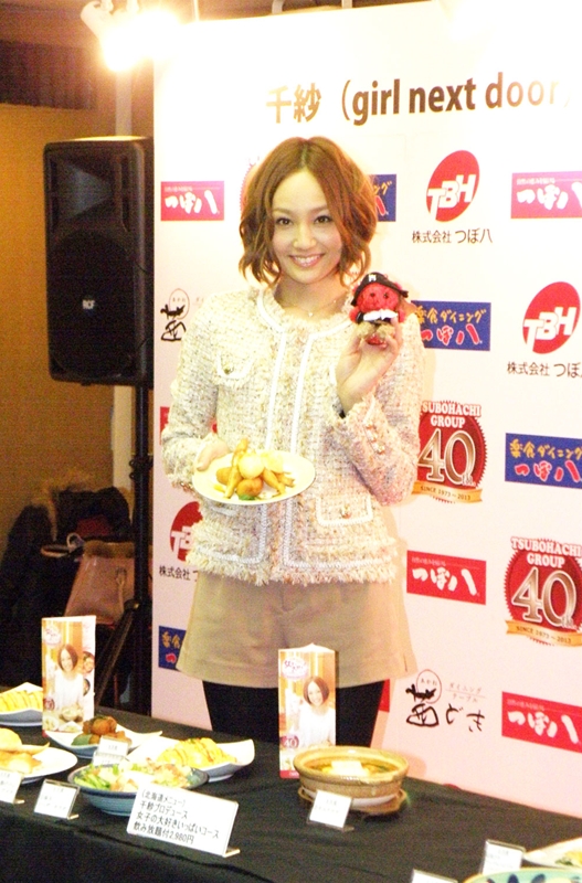 発表会ではMCの他、『つぼ八』のマスコットキャラクター“つぼっち”やメニューの開発担当者なども交えながらのトークショーも実施。メニューに対する熱い想いや、豊富な料理の知識をもとに会場を沸かした。居酒屋で友人と楽しくお酒を飲むことは大好きと言う千紗。そんな彼女には非常に有意義なコラボレーションだったようだ。