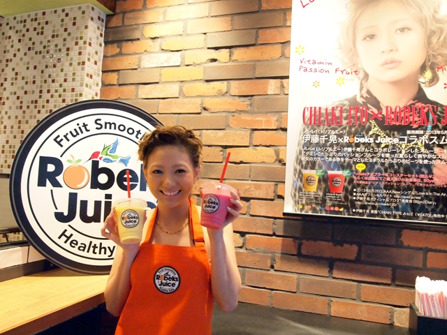 全米を中心に140店舗を展開するスムージー専門店「ロベックスジュース」と男女7人組グループAAAの伊藤千晃がコラボレーション!スムージーコラボ商品の発売記念イベントをロベックスジュース原宿店(東京都渋谷区)にて行った。