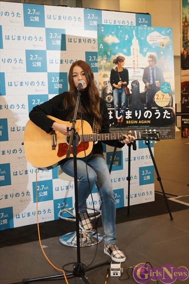 この日は、映画「はじまりのうた」の劇中歌の「Lost Stars」を片平里菜さんの生ギターによる弾き語りで披露。駆けつけたファンをうっとりさせていた。