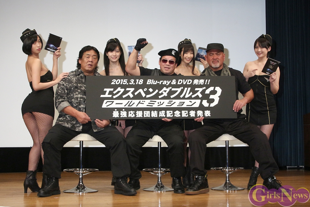 3月17日、昨年11月に日本公開された映画「エクスペンダブルズ3 ワールドミッション」のブルーレイ&DVDの発売記念記者発表が港区・虎ノ門で開催され、プロレスラーの長州力、藤波辰爾、武藤敬司と“ポニーキャニオン グラドル映画宣伝部”の高崎聖子、倉持由香、鈴木咲、清水みさとが登壇した。