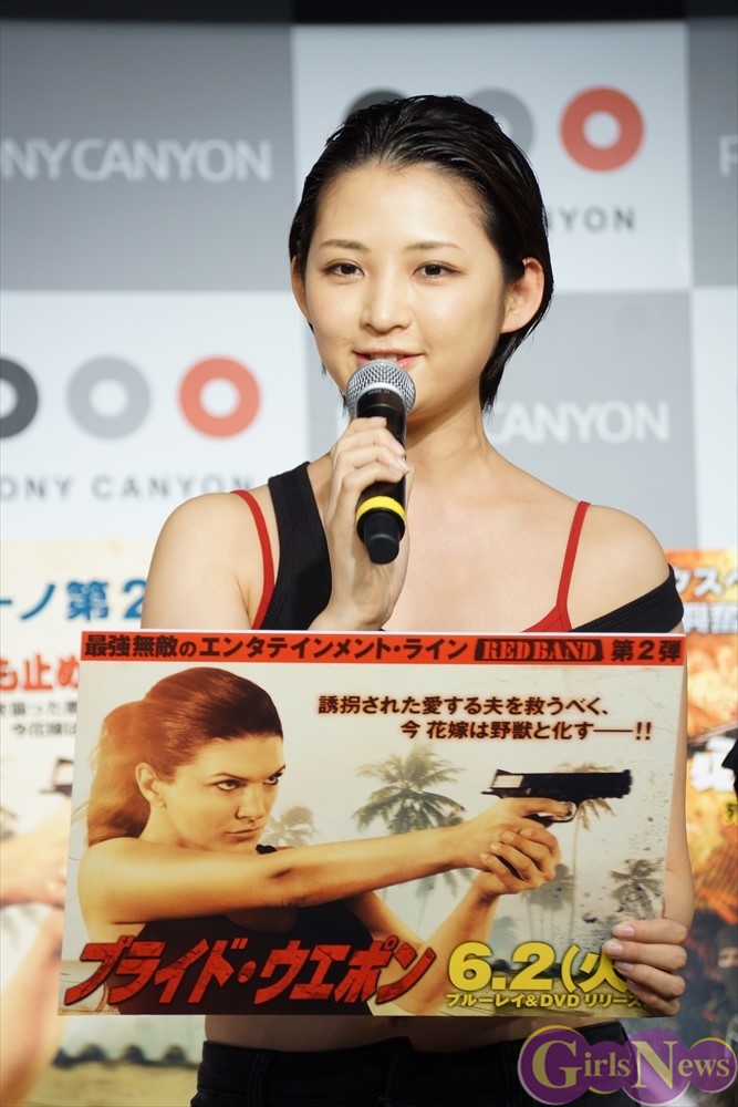 6月2日に発売される「ブライド・ウエポン」について、鈴木咲さんは「全米女子総合格闘技界NO.1の実力と美貌を持ち、長らく女王の座に君臨しているジーナ・カラーノの主演映画の第2弾がとうとう発表となります。彼女のパワフルな大暴走とアクションが本当にすごいので大興奮間違いなしの奪還アクション大作になっております。」とアピール。