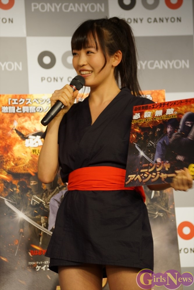 そして、6月17日発売の「ニンジャ・アベンジャーズ」について、清水みさとさんは「なんと言ってもこの作品の見どころは忍者映画の最高傑作と呼び声がすごく高い、華麗で迫力のあるとってもアクションが素晴らしい映画となっています。40歳にして人生で最高の体に仕上がったというケイン・コスギさんの体脂肪率がたったの4%の肉体も本当に見どころです。足技や立ち回りが、こんなに早い人たちいるんだというくらい本当に早くて、忍者が忍者を超えた素晴らしくて、迫力満点の映画になってます。」とアピールしていた。