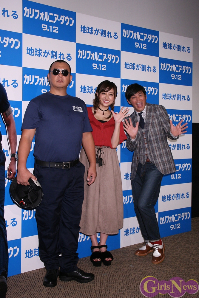 9月7日、映画『カリフォルニア・ダウン』の特別試写会が、港区のワーナー・ブラザース試写室で行われ、ゲストとして、ますだおかだの岡田圭右、菊地亜美、TKO木下隆行が登場した。