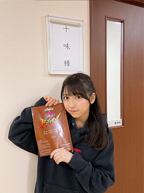 今回作中で、アイドルの役柄を演じた十味さん。「黒砂糖のかりんちゃんというアイドル役を演じさせていただきました! 初めての特撮ドラマで前日から緊張して全然眠れませんでした!! 喫茶どんぶらの撮影セットも凄くて、日差しを照明で作っていたり、背景に映る風まで起こしていたり、見ているだけでワクワクして…! 今思うと落ち着きがなかったかも…(笑)」と撮影を振り返った。