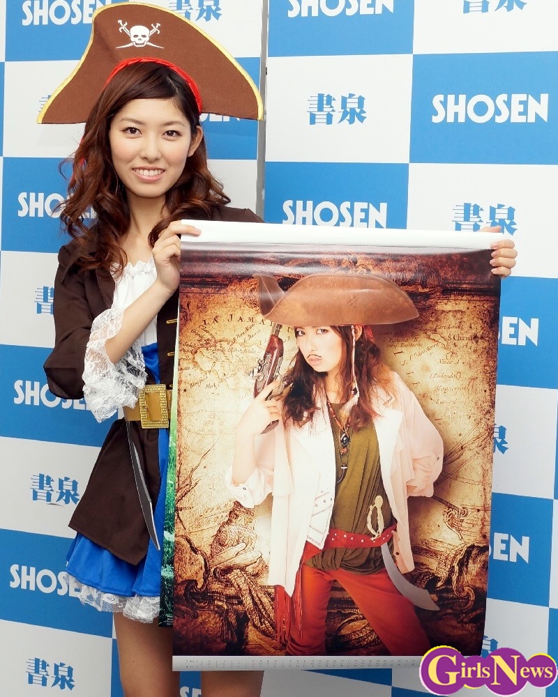 カレンダーについて倉田瑠夏さんは「去年のカレンダーでは世界一周をしました。今年はコスプレがテーマ。メイドさんやサンタクロースになったし、初めてバニーちゃんの衣装を着れて嬉しかった。アイドルっぽさを楽しんでもらえたらと思います。お気に入りの写真はメイドさん。メイドさんは可愛いポーズをとるイメージがありますが、ドジでコケてしまったところです。」と紹介した。