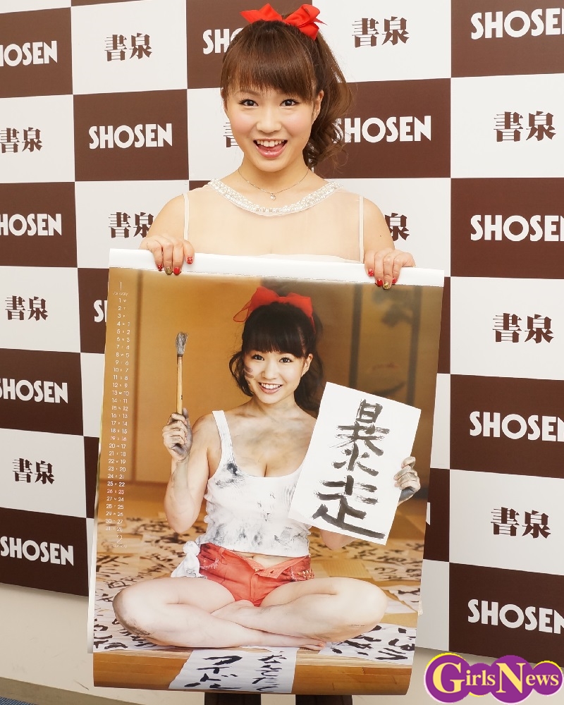 今回のカレンダーは「写真集と8月下旬に撮影しました撮り下ろしと半々になっていて、自分のやりたいことを叶えてもらいました。お気に入りは1月2月は書道で、来年の目標とか自分の好きな格言名言を書いています。季節に合わせた構成になっていて、来年24才になるけど“ヤザパイ”は健在だよってアピールしています。」と紹介。