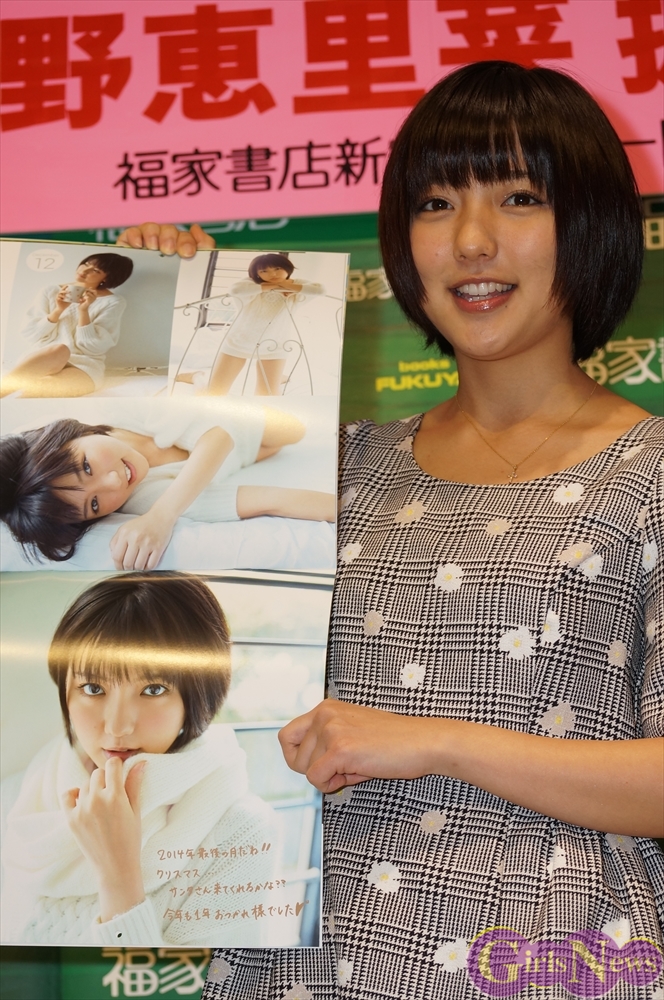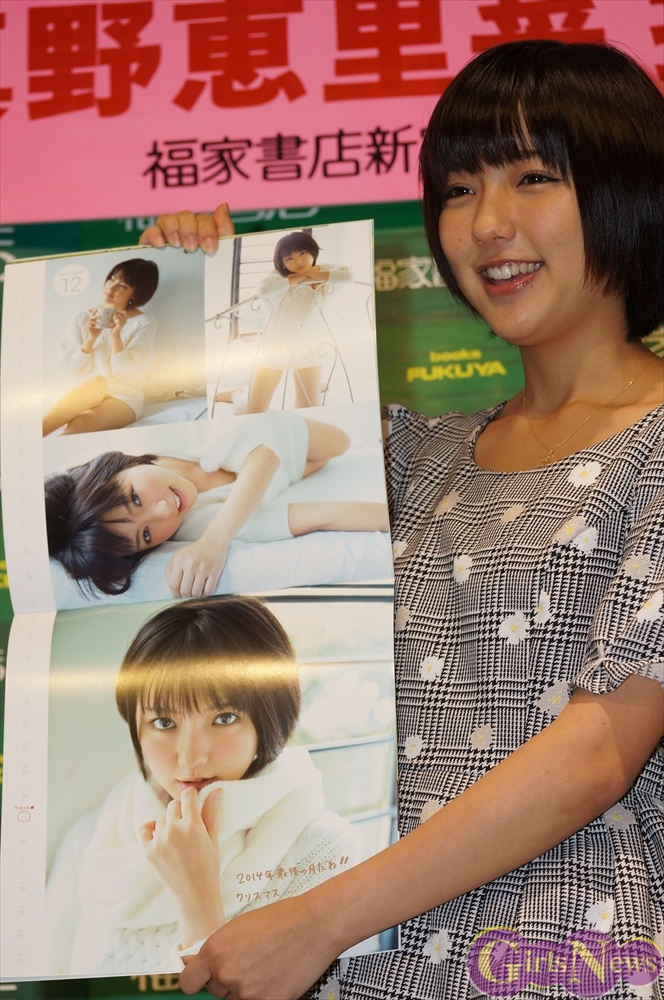 12月14日、女優の真野恵里菜さんのカレンダー「真野恵里菜カレンダー2014」(ワニブックス)の発売を記念し、福家書店新宿サブナード店にてイベントが行われた。