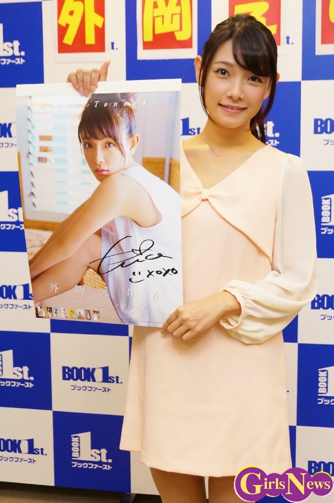 10月4日、アイドリング!!!の外岡えりかさんが2015年カレンダー(トライエックス)の発売を記念し、ブックファースト新宿店でイベントが行われた。