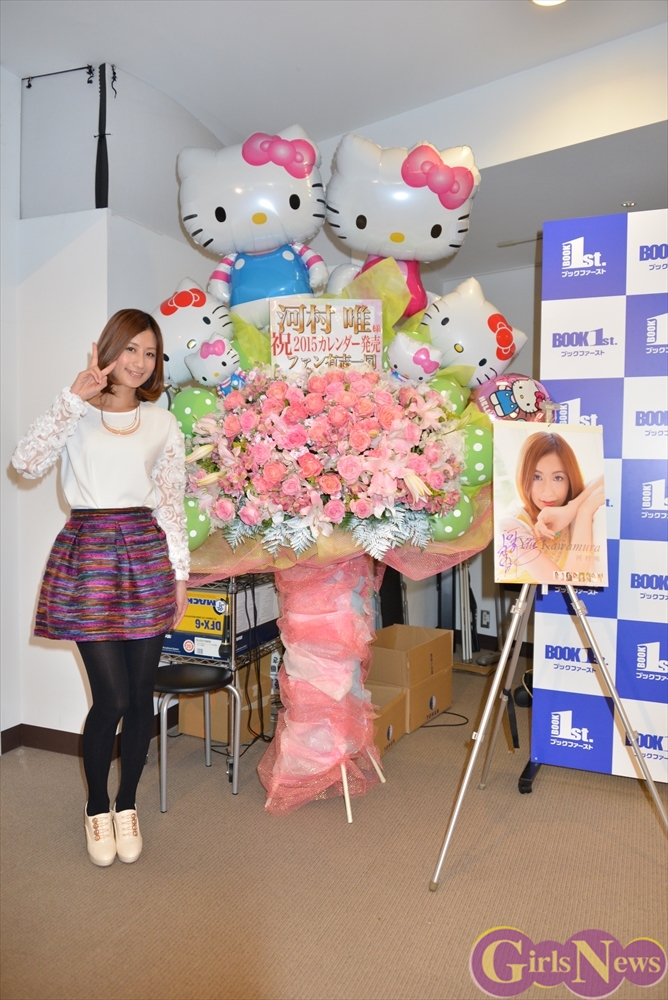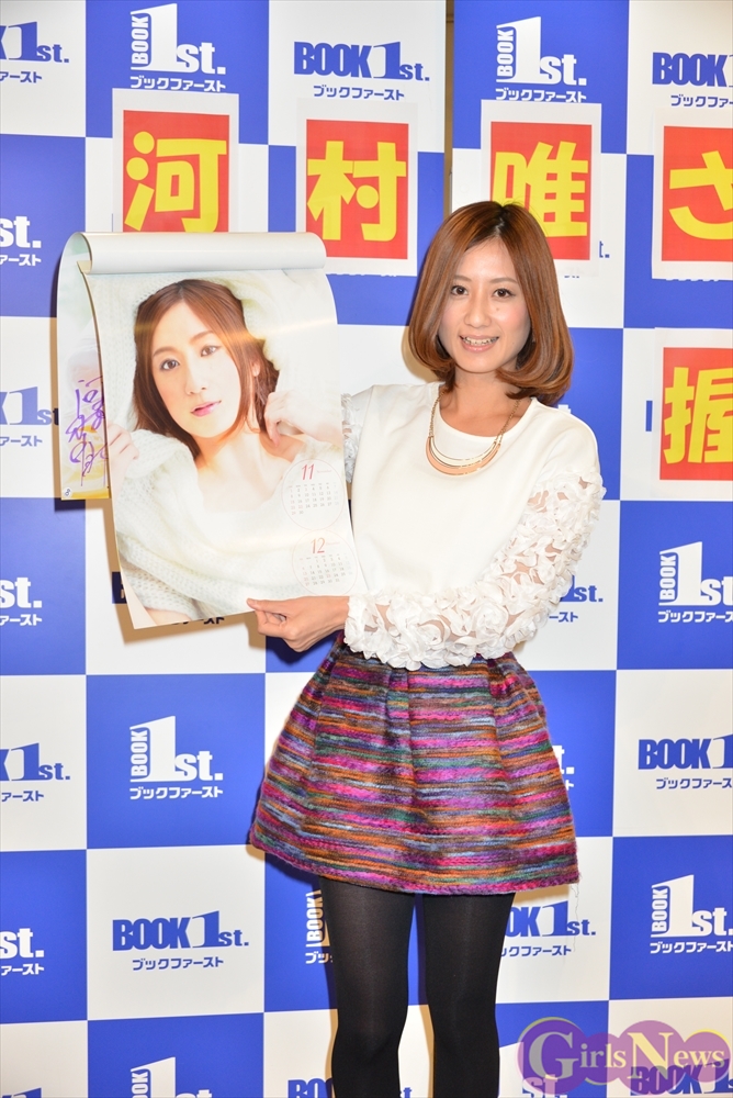 11月9日、アイドリング!!!の河村唯さんの2015年カレンダー(トライエックス)の発売記念イベントが、ブックファースト新宿店で行われた。